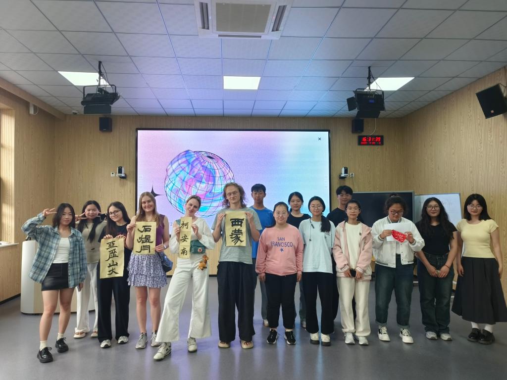 活动伊始,一场精彩的武术表演瞬间点燃了现场的热情,为活动拉开了序幕。随后的“图片猜词”游戏环节,参与者们积极组队,展开了一场手速与脑力的双重挑战,现场欢声笑语不断。在“故事漂流”环节,中外学生分别分享了以“青春”为主题的故事,增进了彼此的文化理解和友谊。趣味教学环节中,同学们自由选择剪纸、武术或书法小组,体验传统文化与英语的完美结合。最后的自由发言与作品展示环节,大家积极总结收获,并合影留念,记录下了这一难忘的时刻。